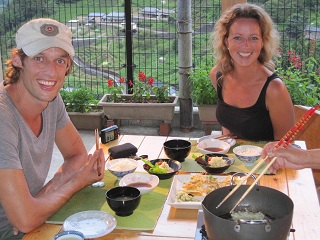 山村の普段の食事をお出しし、できるだけ地元の食材を使います。